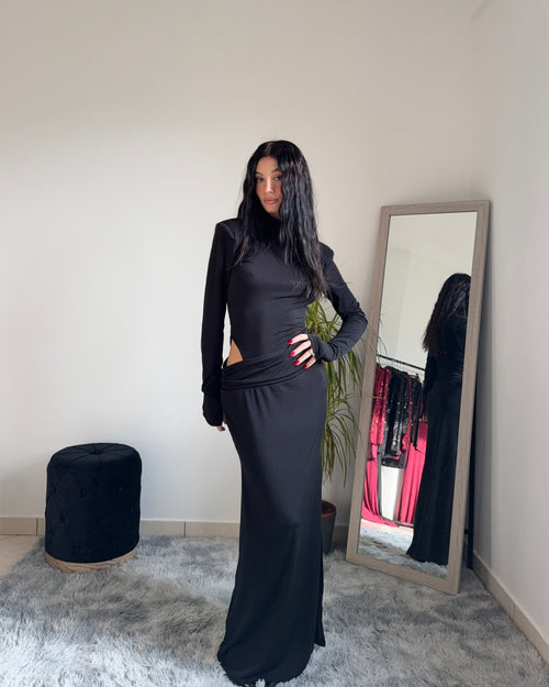 Mini dress nero con paillettes -
